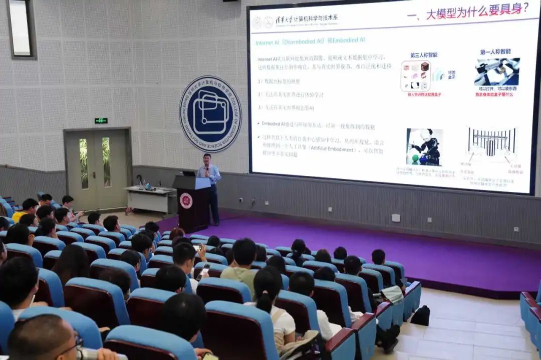 清华大学计算机科学与技术系孙富春教授受邀进行了以“具身大模型与行为学习”为主题的前沿科学报告,从具身大模型技术、行为学习、发展趋势等多个方面进行讲解,为大家拓宽了学科研究视野,引发了深深地思考。最后,孙教授用一首“深圳大学赋”结束了本次报告,展示了顶尖科研工作者深厚的人文修养。