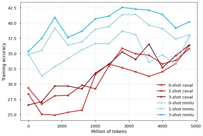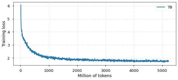 目前,模型已经训练 50亿中英文tokens,收敛情况如图所示: