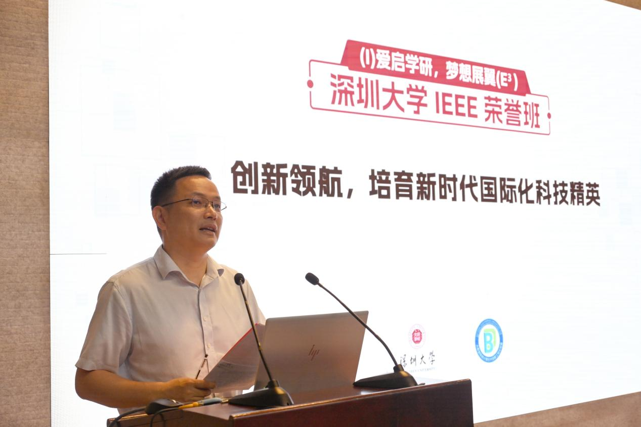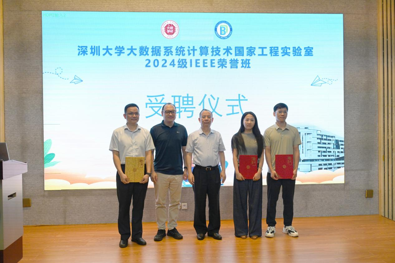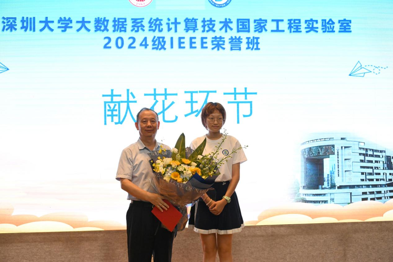 风清气爽,秋意渐浓。2024年9月4日,深圳大学大数据系统计算技术国家工程实验室开展了2024级计算机科学与技术(IEEE荣誉班)主题班会。本次主题班会不仅吸引了校内师生的目光,更有幸邀请到荣誉班主任毛军发院士、腾讯副总裁王巨宏、华为云全球生态部总裁康宁以及华大集团教育中心副院长王林鹏等众多行业精英与学术权威到场,同时邀请了学校教务部袁磊主任,团委柯晓书记,招生办朱玲燕主任,计算机与软件学院杨国洪书记、廖江海副书记等参加,与实验室全体教职工与2024级IEEE荣誉班全体同学共同参与。