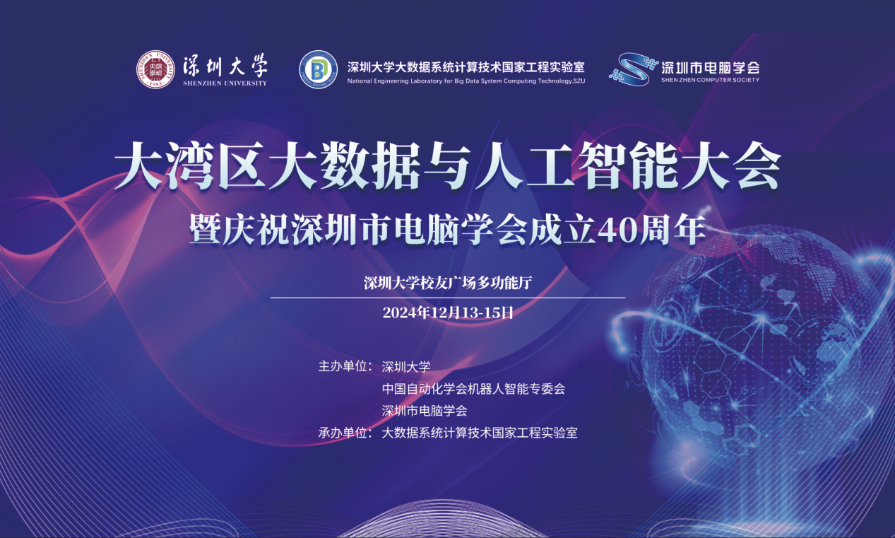 2024年12月14日-15日,大湾区大数据与人工智能大会暨庆祝深圳市电脑学会成立40周年在深圳大学顺利举行。本次大会由深圳大学、中国自动化学会机器人智能专委会、深圳市电脑学会主办,深圳大学大数据系统计算技术国家工程实验室承办,旨在搭建高端交流平台,充分发挥粤港澳大湾区的优势,推动产业高质量发展。